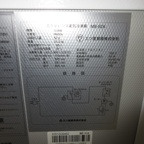 エクセレンス MB-92A 冷凍庫