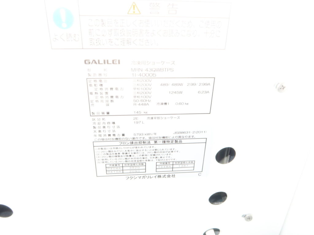 ガリレイ MRN-43QWBTPS 2021年 冷凍ショーケース
