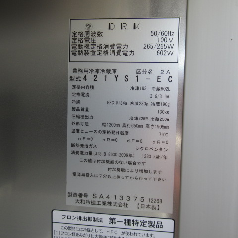 | 温度設定 | 冷凍:-20℃以下 冷蔵:-7℃~-12℃ | |