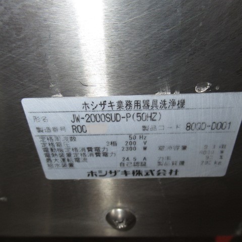 ホシザキ JW-2000SUD‐P(50Hz)2016年
