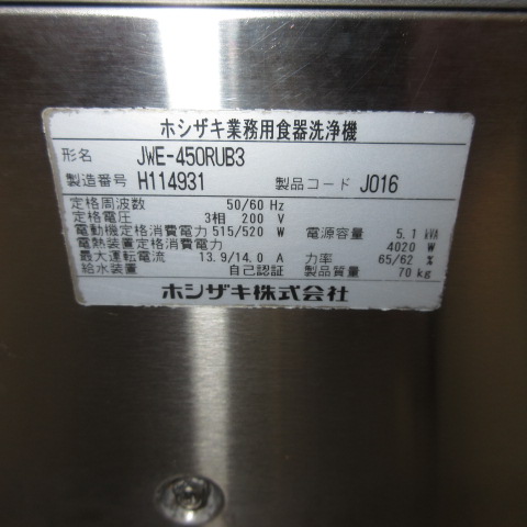 ホシザキ JWE-450RUB3-R 2018年 食洗機