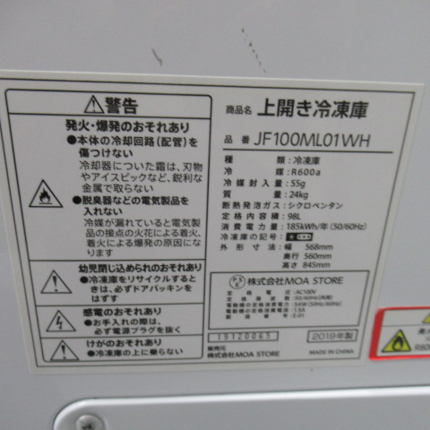 モアストアー JF100MLOIWH 2019年 冷凍庫