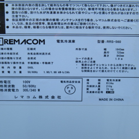 | 特記事項 | 電源 100V 消費電力 305/340W 外形寸法 W1843*D725*H842mm 内径寸法 W1700*D510*H660(コンプレッサー部分含) 質量 77㎏ |