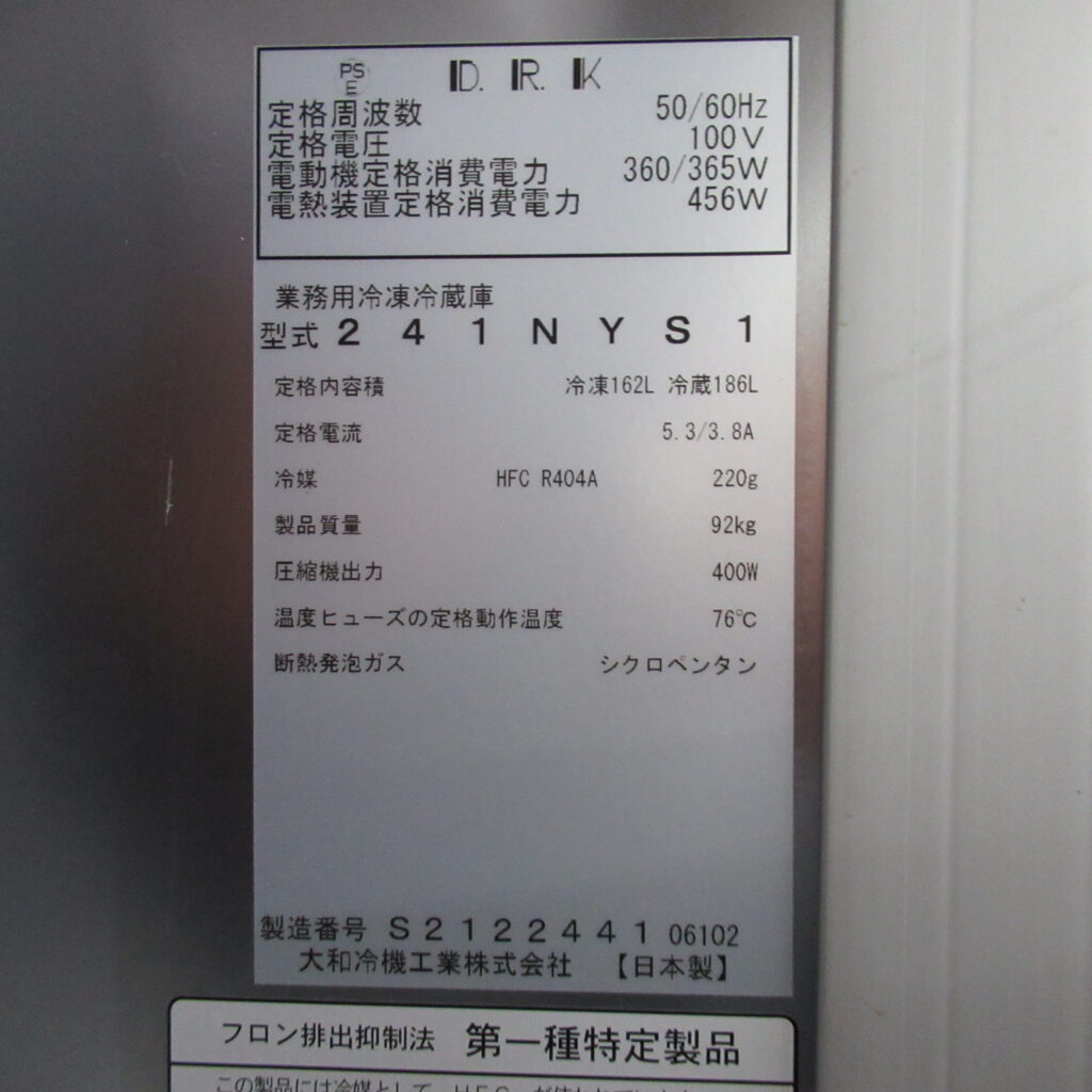 241NYS1 ダイワ 業務用冷凍冷蔵庫