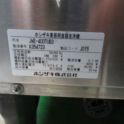 JWE-400TUB3 食洗機 ホシザキ