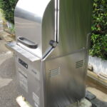 | 特記事項 | 電源 三相200V 電熱装置 1.02kw(洗浄機側)、3.00kw(貯湯タンク側) 消費電力 515/520W 消費水量 1サイクルの使用量=約2.0L 製品重量 69kg ☆ 必要給湯温度 約65℃以上 ☆ |
