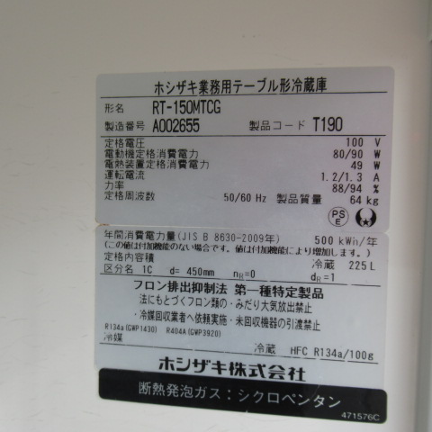 ホジザキ RT-150MTCG 2021年 冷蔵コールドテーブル