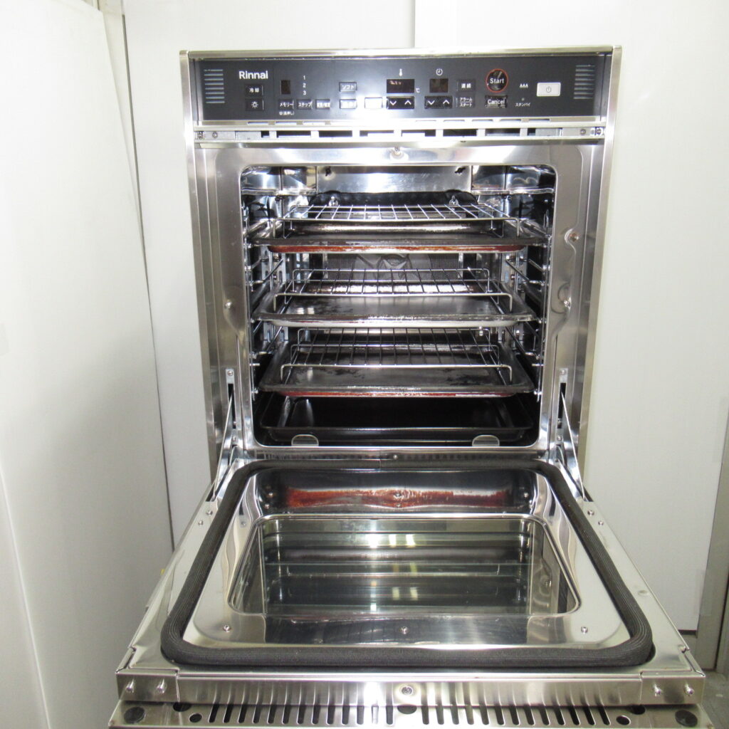 | 特記事項 | 型式 RCK-S20AS4 サイズ W600*D703*H874(㎜) 電源 100V ガス種 都市ガス ガス消費量 9.30kW(8000kcal/h) ガス接続口 直径13 製品重量 65.8㎏ 付属品:オーブン皿(3枚)、オーブン網(3枚)、オーブン皿取っ手(1個)