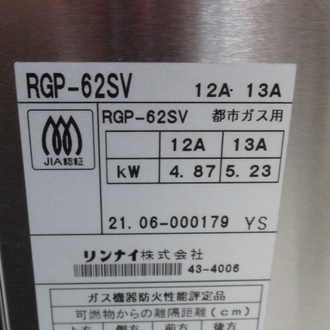 リンナイ RGP-62SV 上火式グリラー