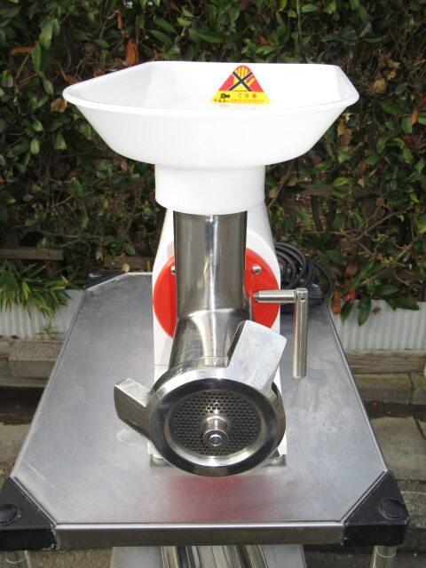 | 特記事項 | 電源 三相200V 消費電力 モーター容量 0.75kw 処理能力 260kg/時(60Hz・プレート目3.2mm使用時) 215kg/時(50Hz・プレート目3.2mm使用時) 重量 27kg ☆ 使用頻度少なくきれいです。 |