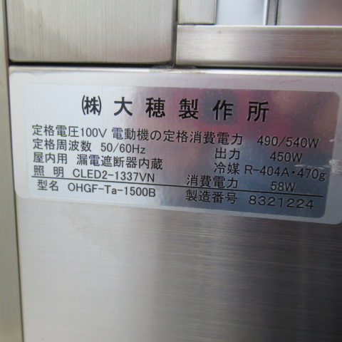 オオホ OHGF-TA-1500B 2021年 冷蔵ショーケース 低温タイプ