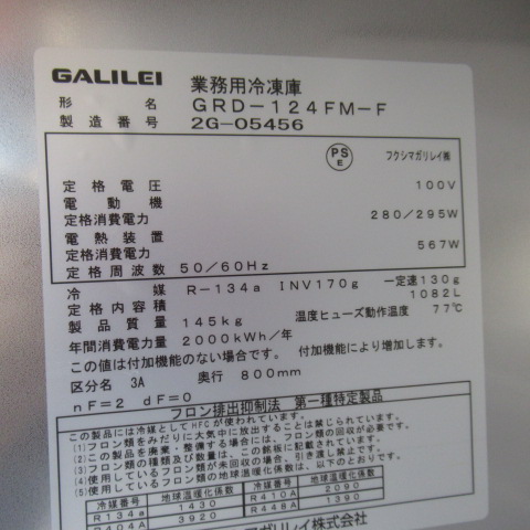 ガリレイ GRD-124FM-F 2022年 業務用冷凍庫
