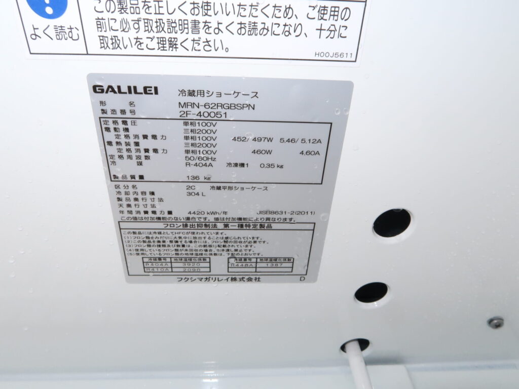 ガリレイ MRN-62RGBSPN 2022年 オープンショーケース