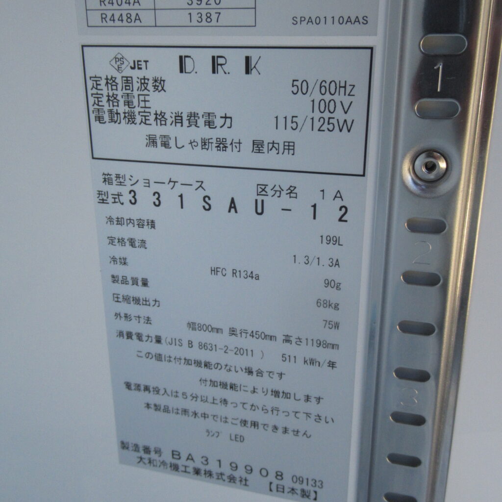 | 特記事項 | 電源 100V 消費電力 冷却時消費電力 115/125W 霜取時消費電力 12W 庫内温度 2℃~10℃ 製品重量 68㎏ ☆ 現場に入らなくて泣く泣く格安での販売です ☆