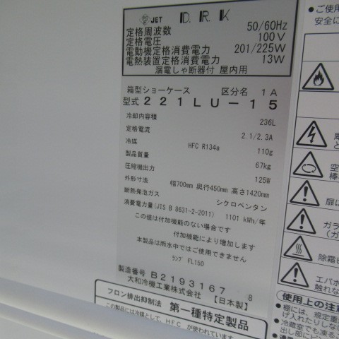 | 特記事項 | 電源 100V 消費電力 冷却時 215/240W 霜取時 42W 庫内温度 3℃~10℃ 定格内容量 235L 庫内等有 |