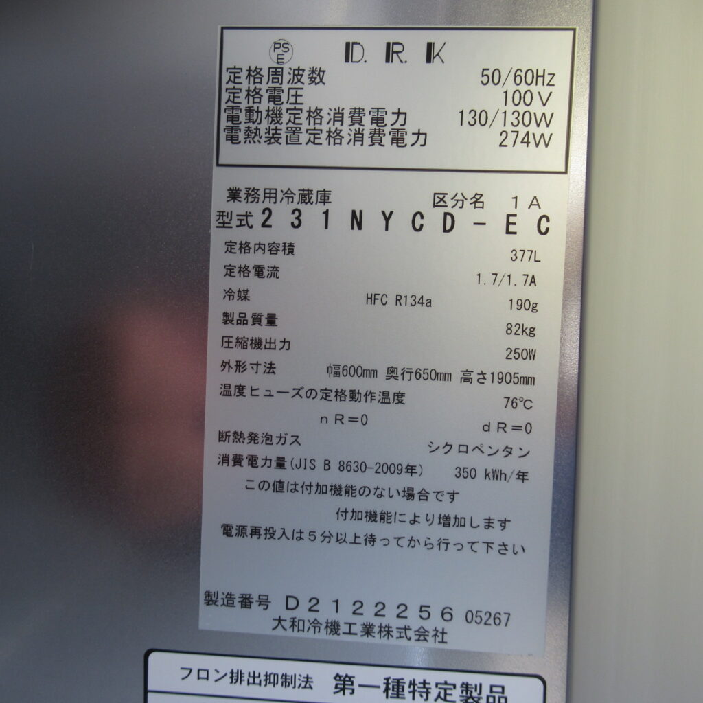 ダイワ 231NYCD-EC 2017年 業務用冷蔵庫