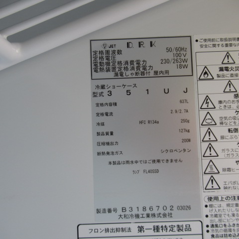 | 有効内容積 | 637L(ビール中ビン:310本/ ビール大ビン:248本) | |