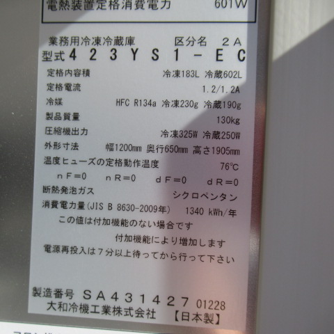 ダイワ 423YS1-EC 2018年 業務用冷凍冷蔵庫