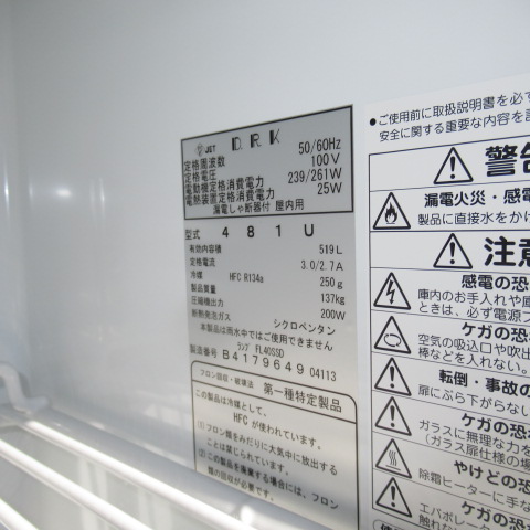 | 特記事項 | 電源 100V 消費電力 239/261W 有効内容量 519L 製品重量 137kg |