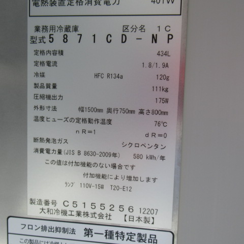 ダイワ 5871CD-NP 2017年 冷蔵コールドテーブル