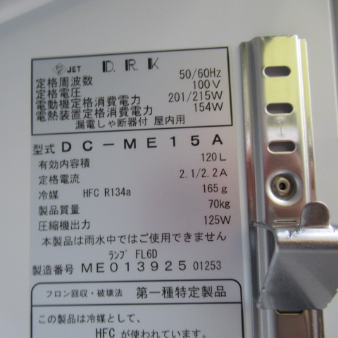 | 特記事項 | 電源 100V 冷却時消費電力 201/215 霜取時消費電力 154W 有効内容量 120L 製品質量 70㎏ ☆ きれいです ☆ 温度調節 2~14℃(周囲温度条件 0~35℃)