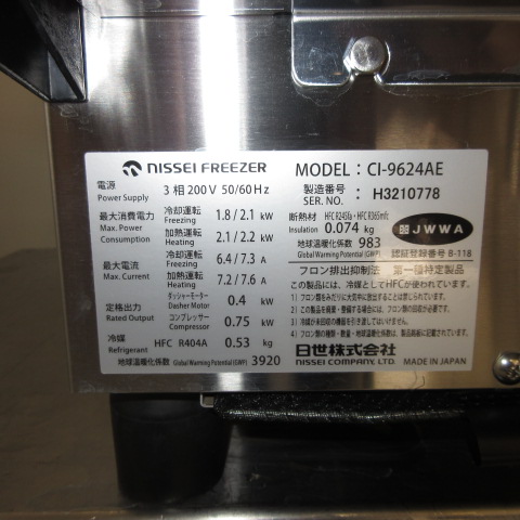 ニッセイ CI-9624AE ソフトクリームフリーザー