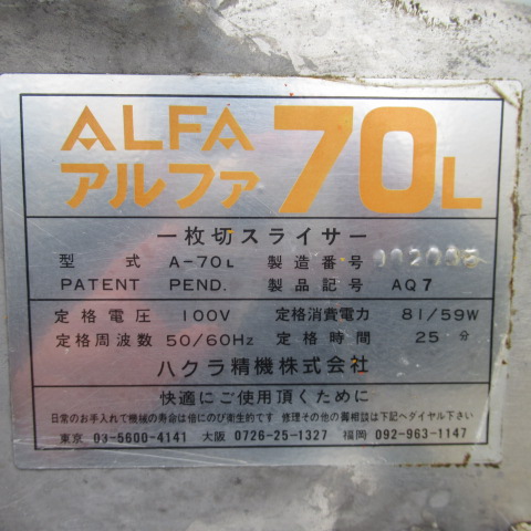 ハクラ アルファ70L 一枚切りスライサー