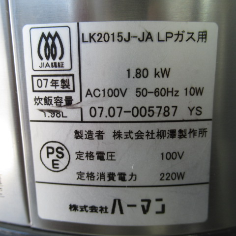 ハーマン LK2015J-JA こがまる ガス炊飯器