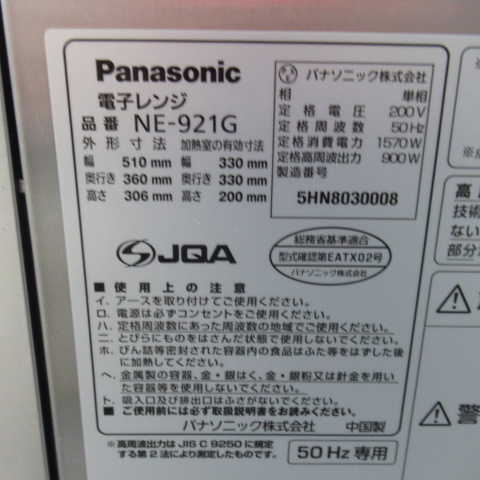 パナソニック 電子レンジ 50Hz NE-921G