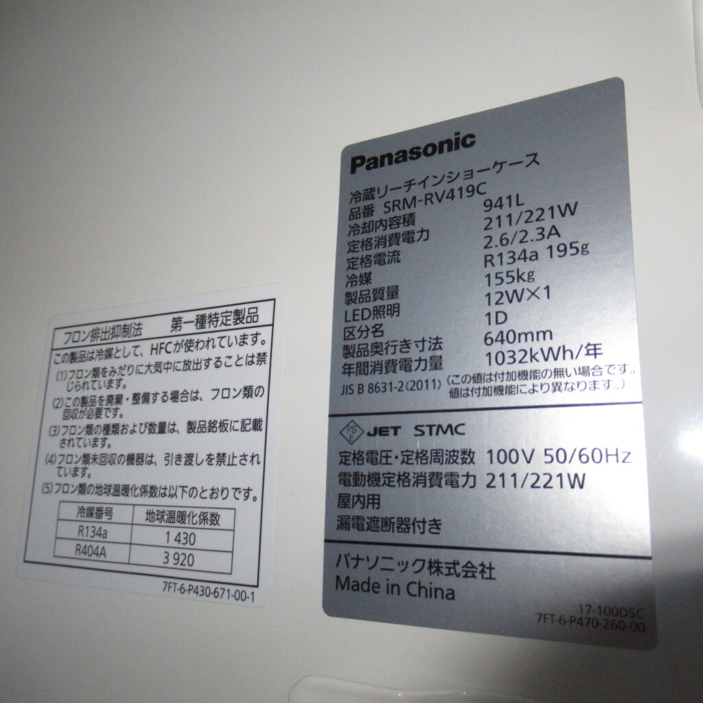 パナソニック SRM-RV419C 2021年 冷蔵ショーケース