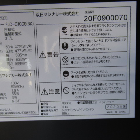 | 特記事項 | 電源 100V 消費電力 472kwh/年 ワイン収納本数 111本(ボルドー型レギュラーボトル換算) 温度調整 5~20℃ ☆ 大変きれいです ☆