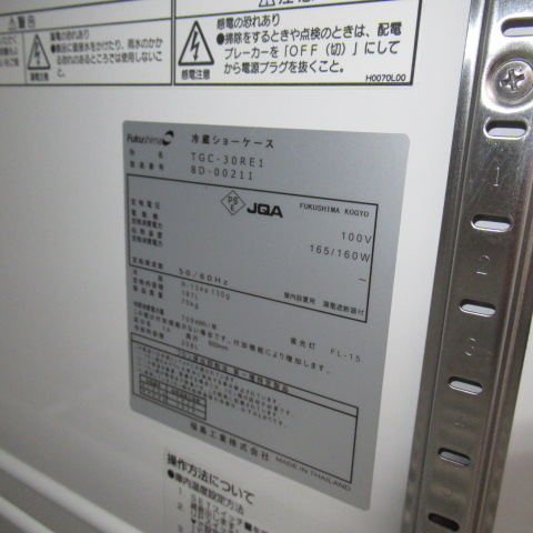 フクシマ TGC-30REI 2018年 冷蔵ショーケース