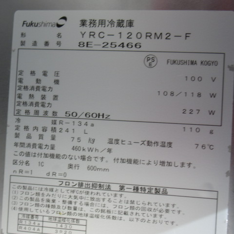 フクシマ YRC-120RM2-F 冷蔵