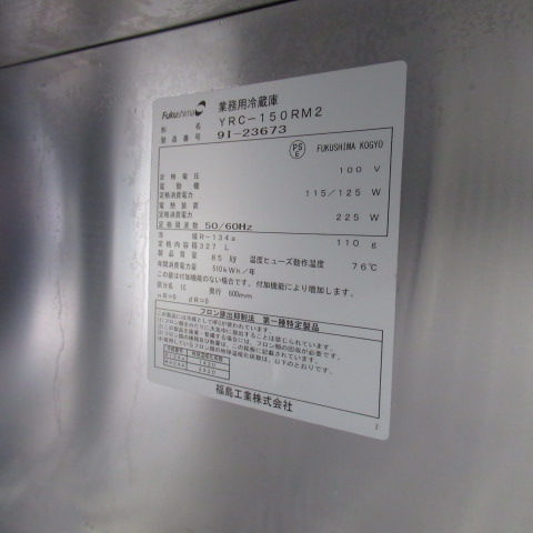 フクシマ YRC-150RM2 2019年 冷蔵コールドテーブル