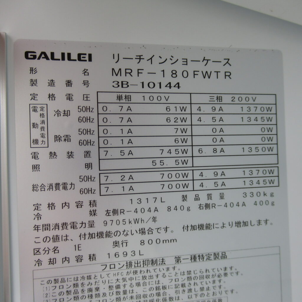 フクシマガリレイ MRF-180FWTR 2023年 業務用冷凍庫