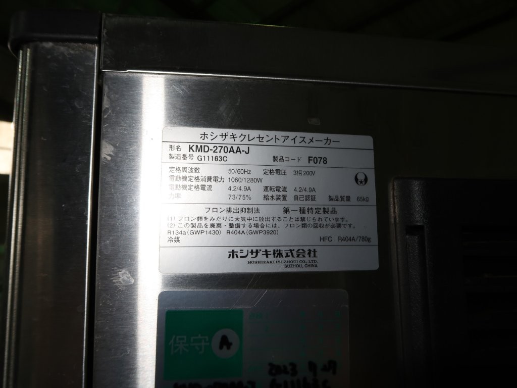 ホシザキ クレセントアイスメーカー KDM-270AA-J