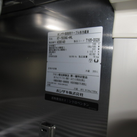ホシザキ サンドイッチコールド RT-150SNG-HML 2020年