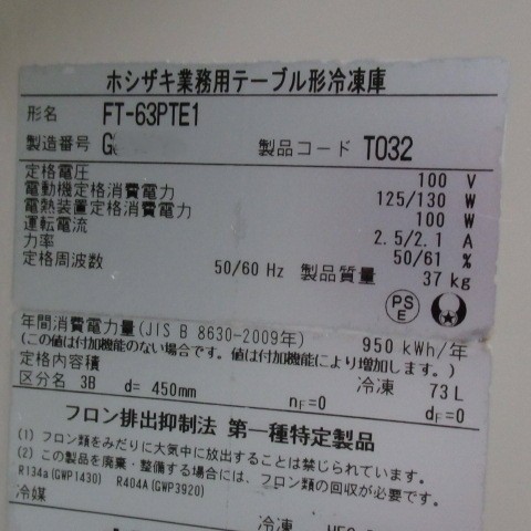 ホシザキ 冷凍 FT-63PTE1 2017年