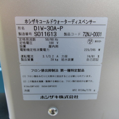 ホシザキ DIW-30A-P コールドウォーターディスペンサー