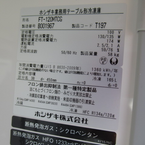 ホシザキ FT-120MTCG 冷凍 未使用品