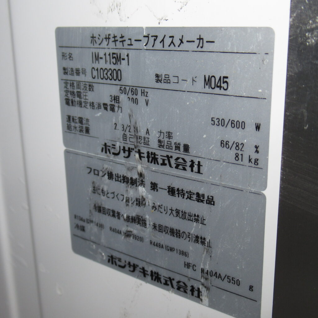 ホシザキ IM-115M-1 2023年 製氷機