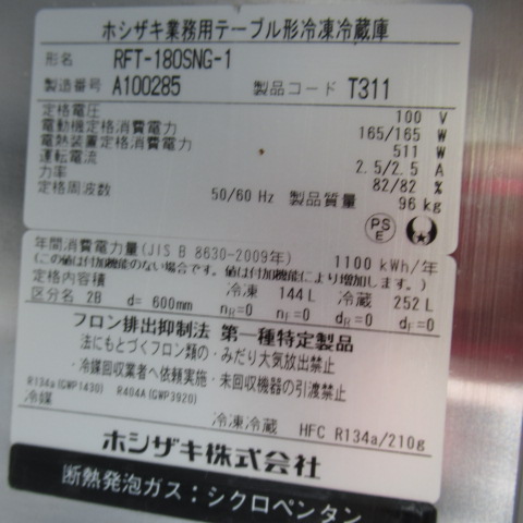 ホシザキ RFT-180SNS-1 2021年 冷凍冷蔵テーブル