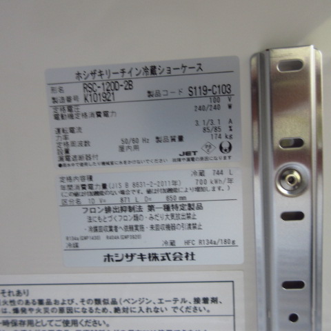 ホシザキ RSC-120D-2B 2020年 冷蔵ショーケース
