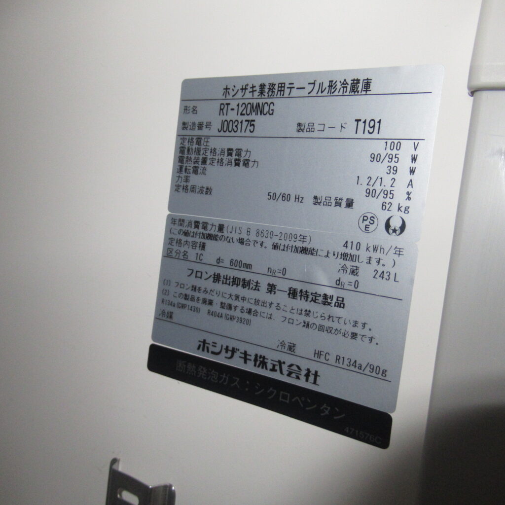 ホシザキ RT-120MNCG 2019年 冷蔵コールドテーブル