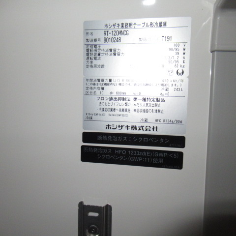 ホシザキ RT-120MNCG 2022年 業務用冷蔵庫