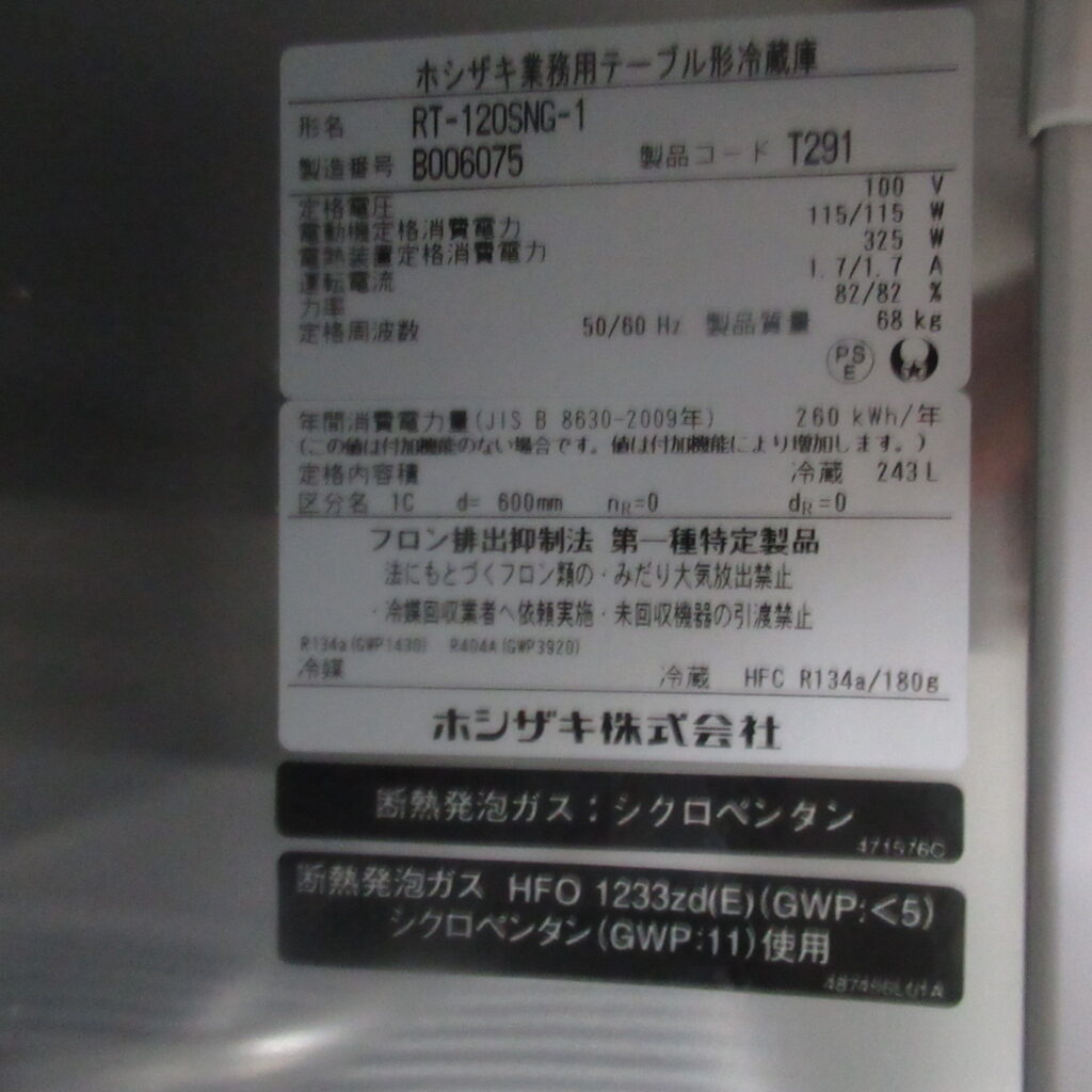 ホシザキ RT-120SNG-1 2022年 冷蔵コールドテーブル