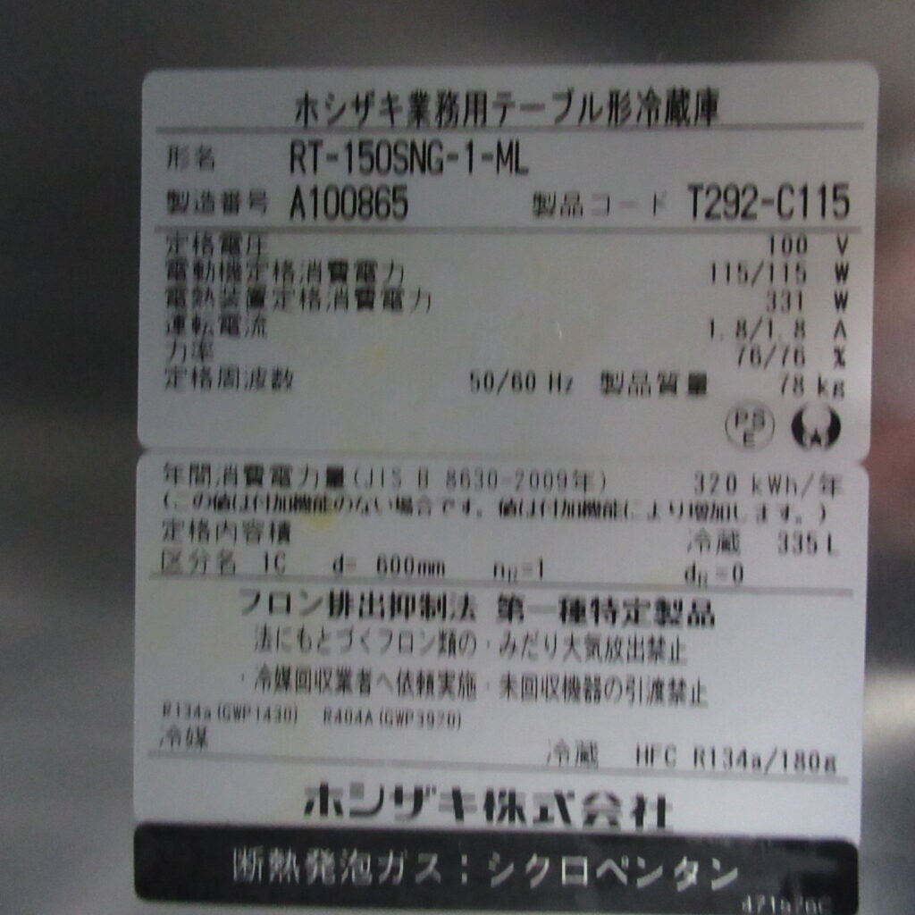 ホシザキ RT-150SNG-1-ML 2021年 冷蔵コールドテーブル