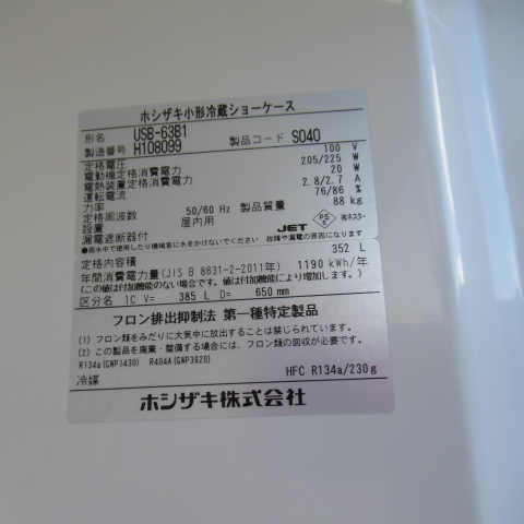 ホシザキ USB-63B1 2018年 冷蔵ショーケース